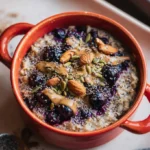 A warm and comforting bowl of oatmeal packed with blueberries, spices, and natural sweetness, perfect for busy mornings or leisurely weekends.