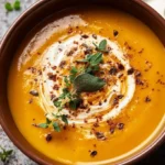 A rich and velvety pumpkin soup that wraps you in warmth and comfort, perfect for the autumn season.