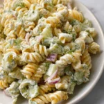 A refreshing and creamy pasta salad featuring tangy dill pickles, red onions, and a creamy dressing, perfect for summer gatherings.