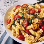 A bright and colorful vegan pasta salad perfect for warm days, packed with fresh flavors from cherry tomatoes, basil, and a hint of lemon.